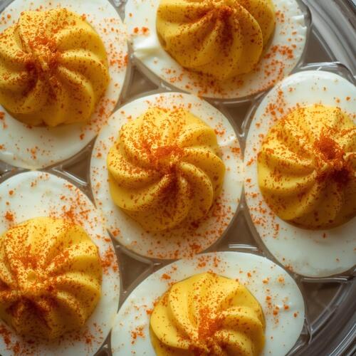 • Écrasez les jaunes d’œufs durs avec de la mayonnaise et une pointe de moutarde.