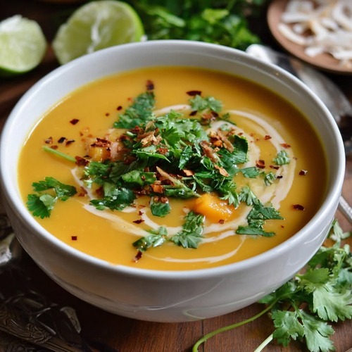 🥣 Soupe de Butternut Coco-Curry, Coriandre et Lime Douce, parfumée et réconfortante, cette soupe de butternut au lait de coco…