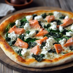Si vous cherchez une pizza raffinée, légère et pleine de saveurs, la pizza au saumon, épinards et ricotta est un excellent choix. Parfaite pour un dîner entre amis ou un repas familial gourmand, elle combine la douceur de la ricotta, le goût délicat du saumon fumé et la fraîcheur des épinards, le tout sublimé par une pointe d’ail et un filet d’huile d’olive. Cette recette vous permettra de réaliser une pizza maison savoureuse, qui surprendra par son équilibre entre légèreté et gourmandise.