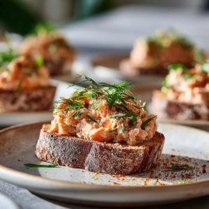 Les rillettes de saumon sont une entrée raffinée et rapide à préparer, idéale pour les repas de fête ou les apéritifs entre amis. Avec l’association du saumon frais et du saumon fumé, rehaussée d’une touche de citron et d’aneth, cette recette offre un équilibre parfait entre douceur et fraîcheur. Elle peut être servie sur des toasts, des blinis ou même accompagnée de crudités pour un effet léger et gourmand.