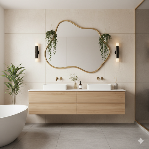 Fini les formes rectangulaires et circulaires classiques ! Les miroirs adopteront des silhouettes organiques, inspirées par la nature et les formes fluides. Pensez à des contours doux, des courbes irrégulières et des bords asymétriques qui ajoutent une touche artistique et décontractée. Ces miroirs deviennent de véritables œuvres d’art murales, apportant mouvement et originalité à l’espace.