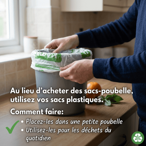 Au lieu d’acheter des sacs-poubelle, utilisez vos sacs plastiques.
