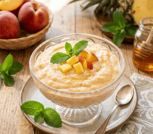 Ce dessert italien express aux pêches et à l’ananas est la preuve qu’une recette peut être à la fois saine, rapide et absolument délicieuse. En 5 minutes seulement, vous créez une douceur fruitée, légère et rafraîchissante, parfaite pour toutes les occasions. Sans cuisson, sans effort, mais avec un goût incroyable qui rappelle les tables estivales ensoleillées d’Italie.
