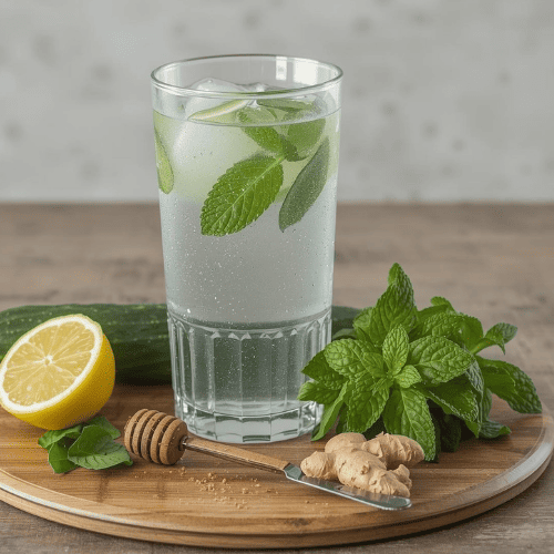 - Option sucrée : Avant de servir, vous pouvez ajouter un peu de miel pour adoucir le goût, mais cela reste facultatif si vous préférez une boisson zéro calorie.