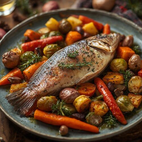 Pour un repas de Noël léger, savoureux et plein d’élégance, la dorade rôtie aux herbes de Noël est un choix…