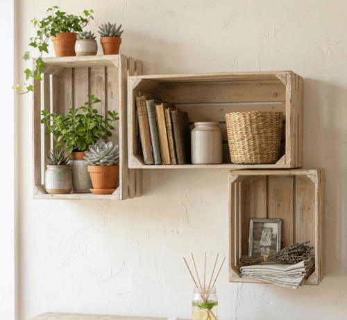 Parmi toutes les idées possibles, l’une des plus simples et efficaces consiste à transformer des caisses en bois en étagères murales rustiques. Une réalisation accessible à tous, économique et très esthétique.