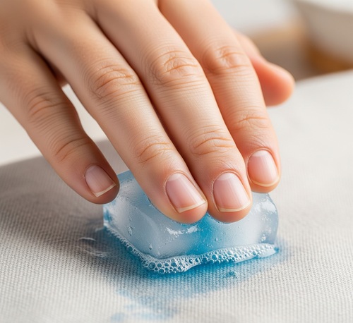 Si vous avez des taches difficiles à éliminer sur vos vêtements, tissus ou tapis, vous pouvez utiliser un cube de liquide vaisselle congelé. Il suffit de frotter le glaçon directement sur la tache pour que le détergent agisse sur la saleté. Cela peut être particulièrement efficace pour les taches graisseuses ou huileuses.