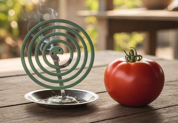 🍅 La tomate coupée dégage une acidité et une odeur végétale qui renforcent l’effet répulsif, surtout lorsqu’elle est associée à la fumée du spirale.