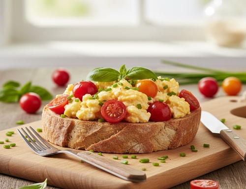 2️⃣ Toast Œuf Brouillé et Tomates Cerises