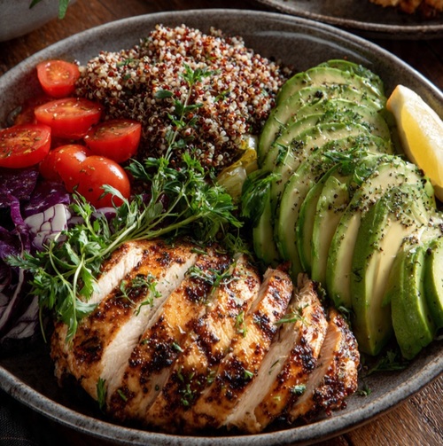 - Protéines maigres : le poulet ou la dinde maintiennent la masse musculaire tout en favorisant la combustion des graisses.