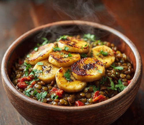 Le moelleux des bananes, la profondeur des lentilles, la chaleur des épices… c’est un repas complet qui réconcilie simplicité et gourmandise.