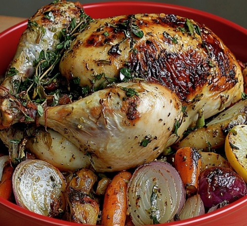Rien ne vaut le parfum irrésistible d’un poulet rôti maison qui dore lentement au four, accompagné de légumes fondants et légèrement caramélisés. Le Poulet Rôti aux Légumes est un grand classique de la cuisine familiale : simple, généreux et plein de saveurs. Entre la peau croustillante du poulet, la chair tendre parfumée aux herbes et le goût sucré des légumes rôtis dans le jus de cuisson, ce plat symbolise à lui seul le vrai repas dominical.